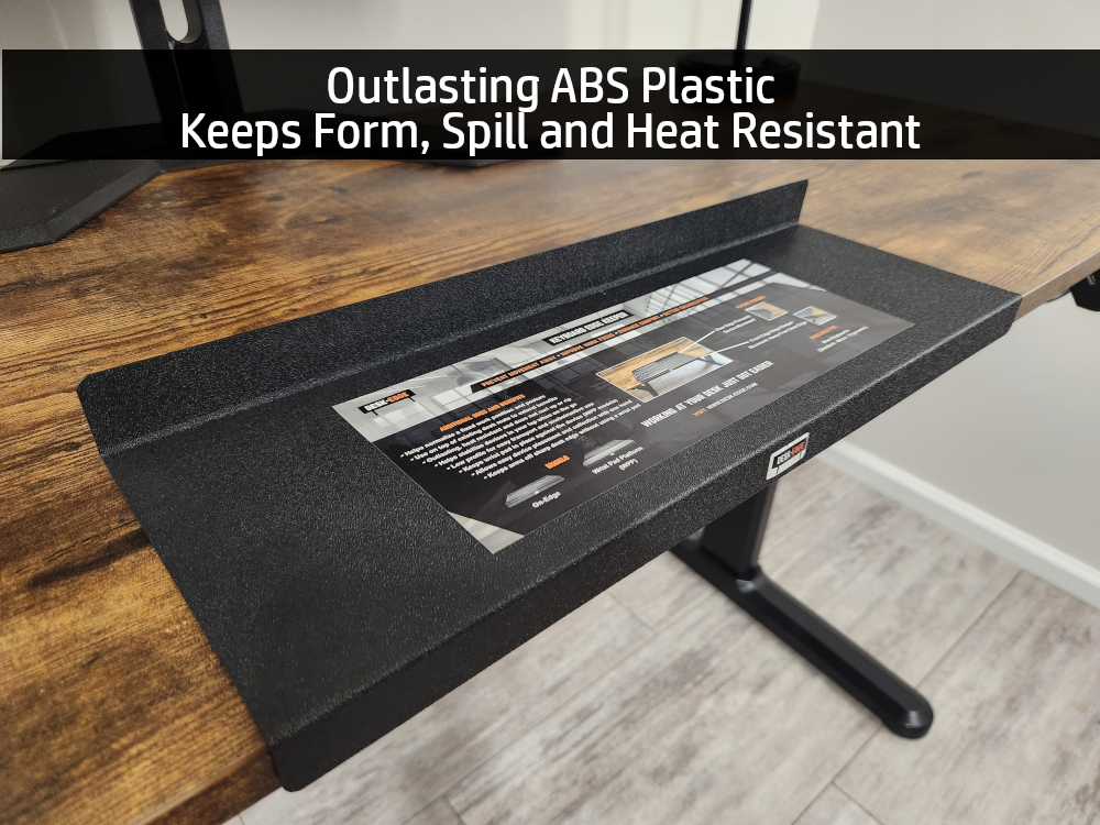 The patent-pending Keyboard Edge Keeper with Wrist Pad Platform (WPP) is custom built for most standard, and ergonomic keyboards. It keeps your arms off the sharp edge of the desk, and your keyboard and wrist pad from moving away, so you can normalize a better work position. It eliminates the need for other work-comfort devices that protect your arm from the desk edge. The WPP is a great addition to have on the laptop keeper if you already have a wrist pad, or prefer the comfort that it offers.